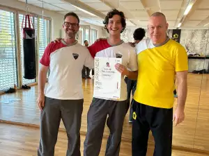 Am Ende stellten sich unsere Schüler den Prüfungen, die mit einer feierlichen Urkundenübergabe abgeschlossen wurden. Das Highlight des Tages war Fabios bestandene Prüfung zum 2. HG / Lehrergrad – herzliche Gratulation!