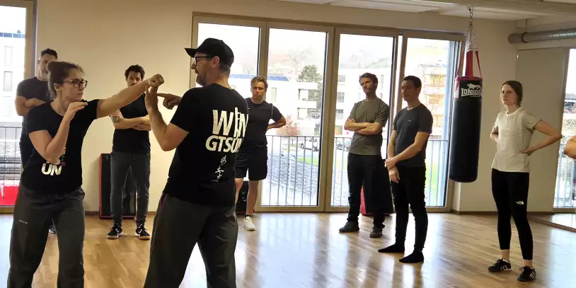 Die Firma Dorner Electronic war zu Gast in unserer WingTsun Schule und absolvierte ein intensives dreistündiges Selbstverteidigungs-Training. Trainiert wurden unter anderem richtige Distanz, klare Körpersprache sowie effektive Abwehrtechniken mit sofortigem Konter – praxisnah und direkt umsetzbar.